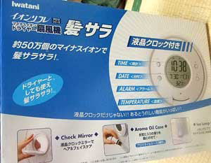 さてこの扇風機は「イワタニマイナスイオンドライヤー扇風機 髪サラ イオンリフレアロマシリーズ 液晶クロック(マイコンタイプ)」という名前が長い扇風機です。
