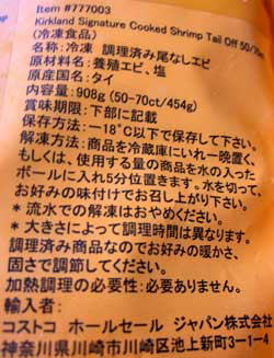 ・名称:むきえび(Kirkland Signature Raw Tail-Off Shrimp 50/70 ct)