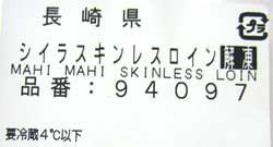 ・シイラスキンレスロイン(MAHI MAHI SKINLESS LOIN)(パッケージ表記)