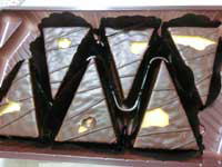 - 洋酒のきいたケーキにクリームをはさみ、チョコレートを贅沢にコーティ