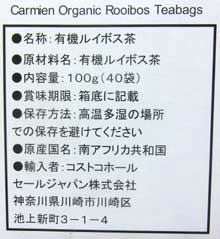 ※2015年5月現在、コストコ尼崎倉庫店では、このカーメイン有機ルイボスティーが販売されています。