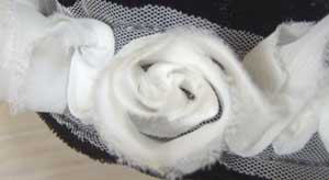 細部のアップです。白いレースで薔薇の形が。