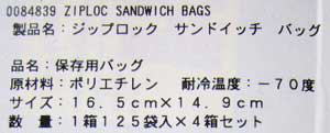 ■ジップロック サンドイッチバッグ@2014年9月購入時の詳細