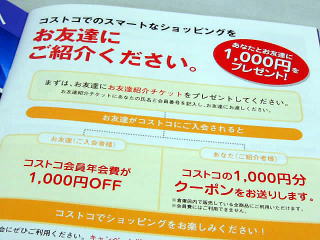 - 紹介者にはコストコの千円分クーポンが郵送されるそうです。