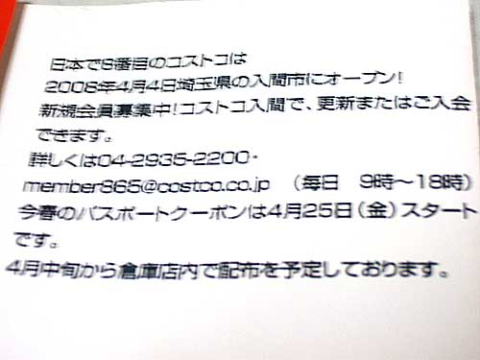・日本で8番目のコストコは4月4日オープン ご存知の方が多いでしょうけれども、 日本で8番目のコストコは、埼玉県入間市に