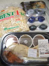 上の写真の通りです。スピード社のゴーグル、いきなり欲しくなった(笑)。泳ぐの好きなので。三つあればなくしても大丈夫(笑)。ナンとカレーのセットはずっと欲しくてやっと購入。あともやし。