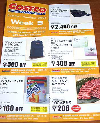 店内入ってすぐの場所に「今日のクーポン」が。そしてレジでは来週のクーポンをもらいました。写真は上に紹介したとおりー。