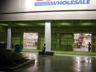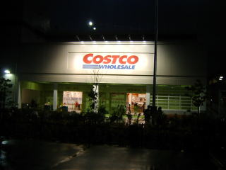 夜のコストコの入口。営業しているんですか?と毎度聞きたい。