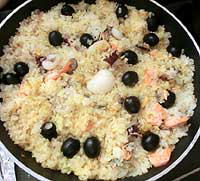 というか、私がパエリアを作る時、必ず入れるのがブラックオリーブなのです(何故だろう)。