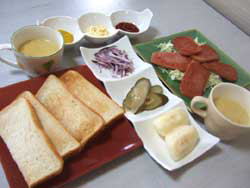 野菜から水分が出るので、食べる直前に挟むのが良いですね。または、野菜は完全にサラダとして別に食べてしまう方が良いと思います。トマトスープでもつければよかった。