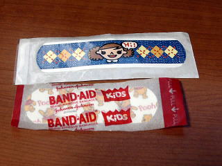 絆創膏の柄はシンプルなものがいいですが、うーん、ガイドヘルパーのときにも持って行くなら、もし利用者さんが怪我をした時にも、可愛かったら使ってもらえるかしら、とこういう柄の絆創膏を持っておりますです(笑)。