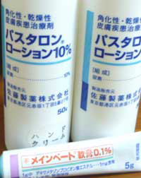 パスタロンローションはハンドクリームで、非ステロイド系、メインベート軟膏の方はステロイド系らしい。